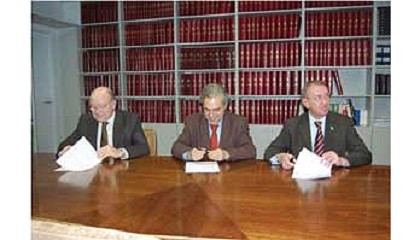Gascó, el consejero delegado de Basf Española, Karl-Peter Bercio, y el director comercial de la misma, Ramón Gil de Luigi, han firmado recientemente un convenio para la construcción de la promoción