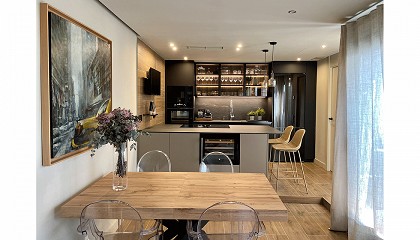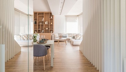 librería La sensación de amplitud se consiguió eliminando la tabiquería y creando muebles a medida muy estudiados como es una gran librería de obra retroiluminada del mismo color que la pared