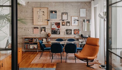 librería realizada a medida y con puertas, para evitar así el desorden de la documentación y papeles necesarios para la actividad laboral. El mobiliario es también inspiración de los años