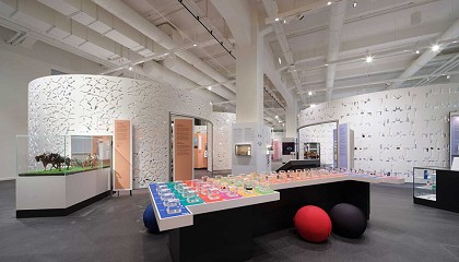 mamparas cilíndricas, realizadas en la luminosa tonalidad Alpine White. Mamparas cilíndricas de Himacs en el Deutsches Museum. Unas estructuras cuya estética única fluyen en armonía junto a los objetos expuestos
