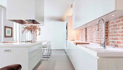 mampara semitransparente que permita el paso de la luz, creando un ambiente luminoso y natural, ideal para iniciar o terminar el día con energía. Cocinas blancas: luminosidad y versatilidad La cocina