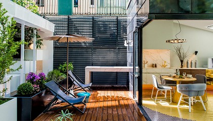 Neolith e intercalando hasta cinco texturas diferentes en los componentes de solería. El proyecto de reforma a manos de Arquitalia queda rematado con la pintura blanco camelia y satinada de Valentine