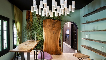 Neolith mostró las diversas posibilidades de la piedra sinterizada en los espacios de cuatro interioristas, como la suite de Natuzzi, diseñada por Raúl Martins, con un patrón creado con diferentes