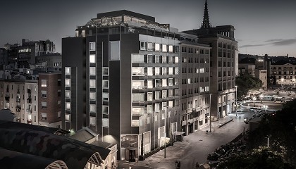 Neolith “nero zimbabwe riverwashed” Fachada ventilada: Wandegar Bow windows: Aluminios Nou Stil Carpinterías aluminio: Technal Carpintería madera: Soldevila Puerta giratoria: Dormakaba SATE: Weber Escalera metálica: Anfra Ascensores: Kone Aislamiento: Knauf