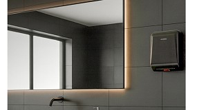 oficinas o centros educativos. El dispositivo incorpora filtro HEPA H13, secado rápido en quince segundos, ajuste de velocidad y ruido, y está adaptado a la normativa ADA, todo ello con un diseño