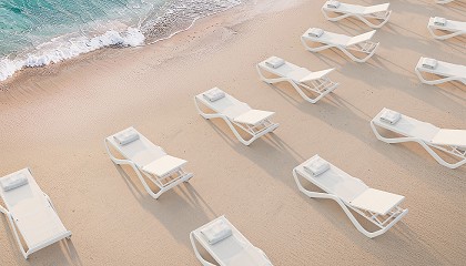 onda que se proyecta hasta el infinito.” Fabricada en polipropileno inyectado de alta resistencia, la tumbona Love está diseñada para durar. Su amplio respaldo ajustable asegura un confort superior, mientras