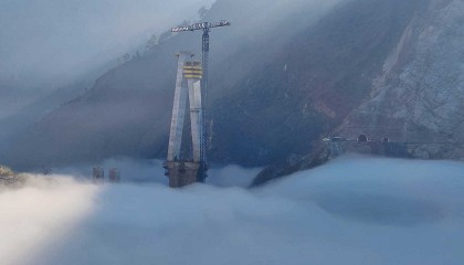 grúa torre 21CM550 de Comansa , en su versión de 25 toneladas, trabaja en la construcción del puente Anji Khad, el primer puente ferroviario atirantado de la India, a una altura