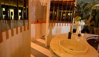 rociador, que cae del techo entre partículas verticales acristaladas simulando agua, que lo envuelven y crean una ducha de ensueño. El espacio de Andreína Raventós ‘AR18’ La propuesta ‘AR18’ de la arquitecta