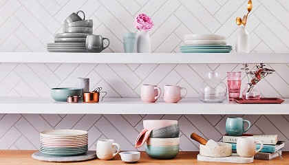 Shell Pink, Merengue y Flint. Esta elegante vajilla de formas orgánicas curvadas y sutiles y con carácter propio, es perfecta para el uso diario. Sus piezas —platos llanos u hondos