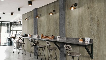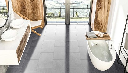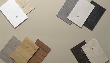 Stone, Marfil Stone, Carrara Marble o Travertino Marble; y maderas como Scandinavian Wood, Cognac Wood y Arce Wood. Estéticas que se realzan con la textura de la serie Slate y pueden