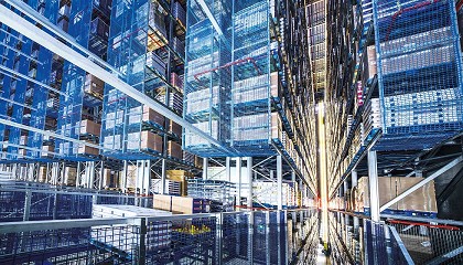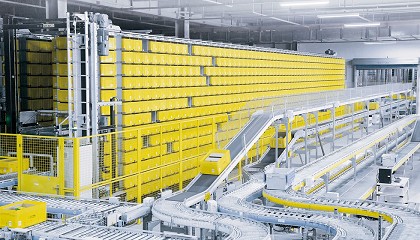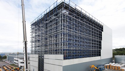 transelevadores y 74.650 ubicaciones de almacenaje de cajas y 3.973 ubicaciones de almacenaje de palés. La solución también incluye el sistema de picking automático A-Frame, que permite una velocidad