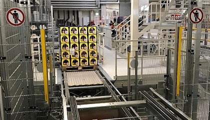 transelevadores a los 13 existentes ypara mantener el equilibrio de los flujos del sistema ha hecho falta también una despaletizadora automática adicional (para un total de tres) así como una nueva