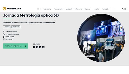 3D para septiembre - 30/07/2024: Aimplas prepara una jornada sobre metrología óptica 3D para septiembre Aimplas organiza una jornada sobre metrología óptica 3D el 25 de septiembre, en su sede de Paterna