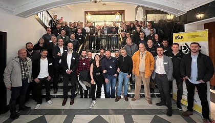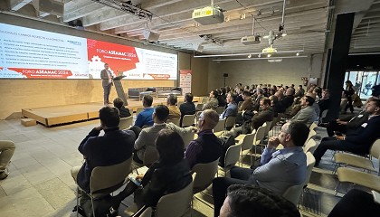 Genie), Enrique García (Ahern Ibérica), Carlos Bordonado (JLG) y Massimo Franceschi (CTE). De izquierda a derecha: Massimo Franceschi (CTE), Carlos Bordonado (JLG), Enrique García (Ahern Ibérica), David Gómez (Terex Genie