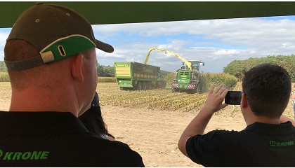 Krone observan el trabajo de la picadora de maíz BiG X 1180, considerada el “buque insignia” de la marca alemana. Farming Agrícola no deja de crecer y anuncia para las próximos