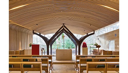 Stuart Allan de Simpson & Brown Architects. Se decidió utilizar roble blanco estadounidense para el revestimiento del techo encima del altar y del santuario. El techo se apoya sobre cuatro columnas