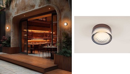 anillos de color para ofrecer una personalización total y coherente con cada proyecto lumínico. La luz frontal proyecta un halo suave y envolvente sobre paredes o techos, elevando espacios como