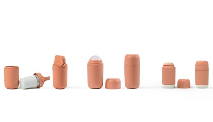 anillo deslizante, un envase de gel de ducha con un tapón de tres piezas que permite colocarlo boca abajo y un cepillo de dientes recargable con un mango ligero fabricado