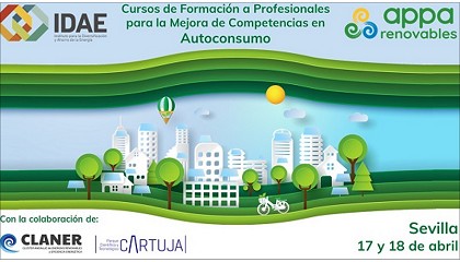 Appa Renovables organizan, en distintas ciudades españolas, unos 'Cursos de Formación a Profesionales para la Mejora de Competencias de Autoconsumo'. La primera edición será en Sevilla, los días 17 y 18 de abril