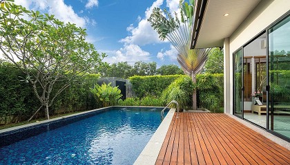 barnizado como la madera natural. Si se prefiere pavimento, puede usarse arena para juntas, lo que evitará que crezcan malezas entre las losas. El césped artificial es fácil de instalar