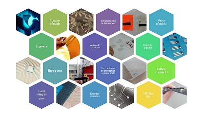 Calefactor impreso en una puerta de automóvil Otro ejemplo es el de la integración de un calefactor en una puerta de automóvil. En este caso, por requisitos de aislamiento, el calefactor