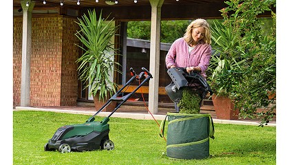 césped más grandes con un rendimiento de corte eficiente de hasta 40cm. Con un motor diseñado para la lograr la máxima eficiencia energética, este cortacésped cuenta con empuñaduras Ergoflex que se deslizan