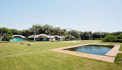 césped y pavimentadas que incluyen una piscina. En la parcela podemos encontrar varias obras de arte escultóricas que la familia Gomis-Bertrand fueron instalando con los años. Foto: José Hevia/Fundaci