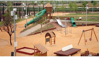 columpios y grandes toboganes para niños de entre 4 y 14 años. En su diseño y construcción, Maderplay ha cuidado especialmente la integración de los nuevos juegos con los ya existentes