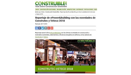 CONSTRUIBLE - 26/11/2018: CONSTRUIBLE Construible.es nos ofrece un reportaje de ePower&Building con las novedades de Construtec y Veteco 2018. Leer texto completo aquí: https://www.construible.es/2018/11/26/reportaje-epowerbuilding-novedades-construtec-veteco-2018