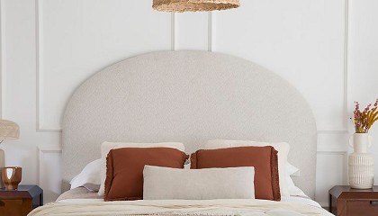 doradas El cabecero tapizado en tela ofrece la máxima comodidad. Con el modelo Miranda de Banak, se podrá disfrutar de un respaldo confortable ideal para leer y desayunar en la cama