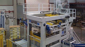 También dispone de dispensador automático de palés y caminos de rodillos de evacuación hasta la enfardadora. La instalación de paletizado está diseñada para una producción de alrededor de 6 toneladas/hora.