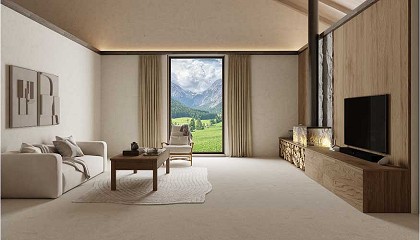 espejo, es capaz de capturar y duplicar el entorno, reforzando la geometría y el carácter gráfico del espacio. Su presencia permite que la luz no solo ilumine, sino que organice
