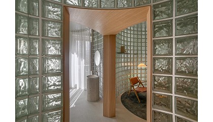 espejos y las paredes de vidrio, realizadas en bloques de pavés, emiten destellos y dejan pasar la luz de una manera muy especial que sugiere el fluir del agua. Así, el visitante