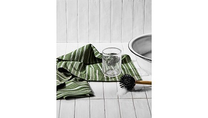 estampado de rayas y en los tres colores atemporales, mientras que los paños de cocina tienen un tejido de nido de abeja y un diseño a todo color, incluida una hermosa