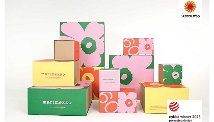 estampado Unikko y patrones con el logotipo de la marca. En su valoración, el jurado subrayó que el sistema de embalaje desarrollado reduce el consumo de recursos, mantiene la seguridad
