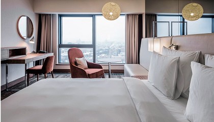 Hotel - Zagreb - 10/01/2024: Una nueva estética gracias al vidrio impreso Imagin Flutes AGC en la renovación del International Business Hotel - Zagreb El International Business Hotel de Zagreb acaba de terminar