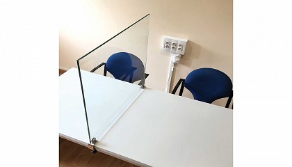 mamparas de separación - 08/05/2020: CBM desarrolla un herraje para fijación de mamparas de separación El herraje SEP-01 de Blamar facilita la fijación de separaciones de vidrio o metacrilato sobre
