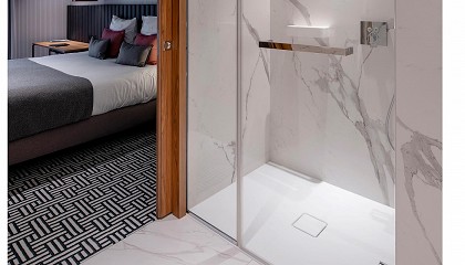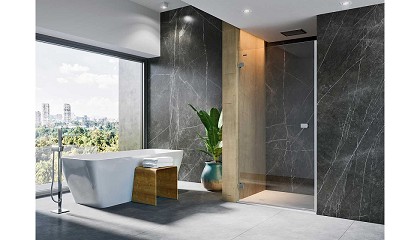 mamparas transparentes y elegantes, líneas rectas, superficies de mármol y colores grisáceos o pastel son, en la actualidad, las características de este tipo de espacios. Mamparas como las de la gama
