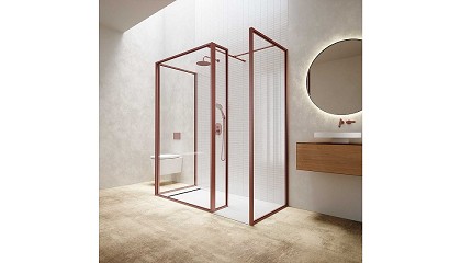 Mampara Nordic en color cobre. La línea de fijos Nordic de Profiltek destaca por su diseño enmarcado y ofrece una amplia variedad de acabados. Dentro de su elegante sencillez, los fijos