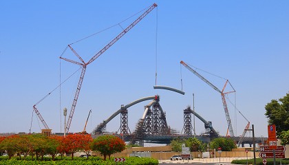 puente, que no podía soportar el peso de una grúa de gran tamaño. Por lo tanto, la instalación de los segmentos solo podía ser realizada por grúas operando desde las orillas