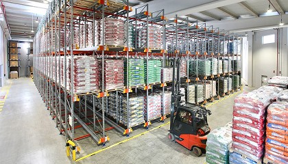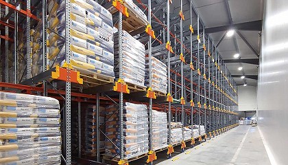 shuttle con capacidad para almacenar 2.953 europalés de producto terminado. Se trata de una solución semiautomatizada, que utiliza carros satélite (shuttle) motorizados para transportar la carga de manera autónoma por el interior
