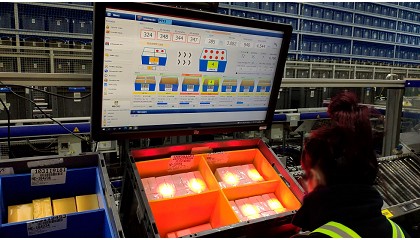 Shuttle Evo y se clasifica de forma eficiente y ergonómica en los puestos de trabajo 'mercancía a la persona' Pick-it-Easy. El sistema de transporte suspendido de Dürkopp Fördertechnik