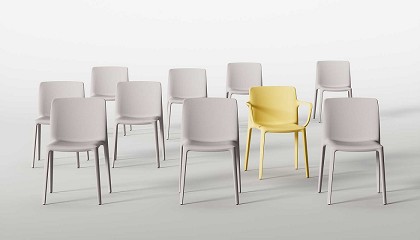 sofás y mesas diseñados para restauración, oficinas y hoteles, con una estética que fusiona luz, color y el carácter cálido del sur. También se mostrará Noray, un separador que redefine