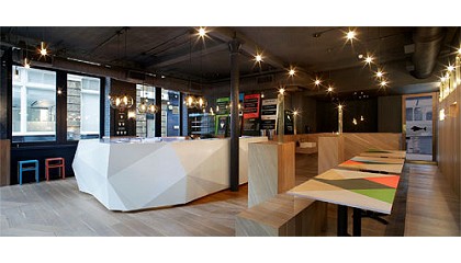 Sushi de Londres - 07/02/2013: El roble blanco estadounidense viste el nuevo restaurante Yoobi Sushi de Londres 7 de febrero de 2013 Foto: Hufton & Crow. Yoobi, que abrió sus puertas en abril