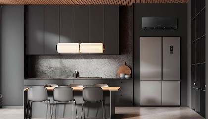 suspensión mediante un sistema de cable retráctil que permite ajustar la altura entre 120 mm y 1.500 mm, adaptando la luz a necesidades puntuales según el uso. Esta cocina no solo