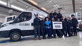 trabajo celebró cómo se merece. Celebración de la salida al mercado de la plataforma articulada MXE 200 de Multitel Pagliero número 1.000. La MXE 200 entró en producción en junio de 2020 y la primera unidad se entregó en septiembre de 2021. Montada sobre un camión Iveco Daily de 3,5 toneladas, presenta una altura