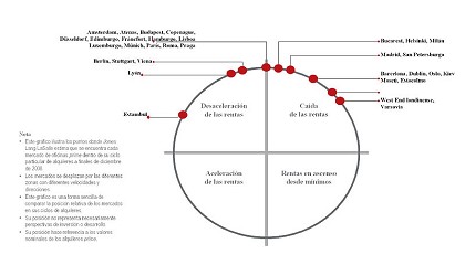 Utrecht (-30 puntos básicos hasta el 8,8%), Edimburgo y Bruselas (ambos -20 puntos básicos hasta el 4,3% y el 9,2%, respectivamente), seguidos de Düsseldorf, Luxemburgo y Estocolmo