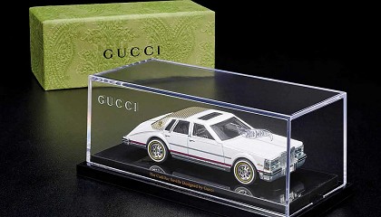 vitrina, juntamente con un packaging diseñado y producido por Gucci. Este modelo a escala 1:6 presenta detalles autênticos de los vehículos de tamaño real. A través de la plataforma
