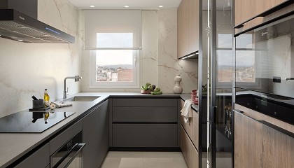vitrina y en parte del mobiliario, que aportan un ambiente más íntimo y exclusivo. Un trabajo totalmente a medida El resultado del diseño de la nueva cocina, tan moderna como