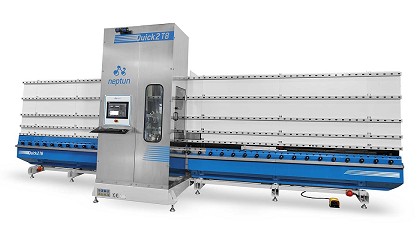 vitrinas y pegado. AWA, exclusivo sistema hidráulico de gestión automática de las ruedas. RC-4, ingenioso sistema de carros para el mecanizado de paralelogramos sin una costosa motorización. Detalle del carro